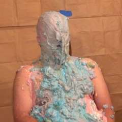 Bradley k was surprised by MessyGirlPeyton with a big sloppy cream pie to the face